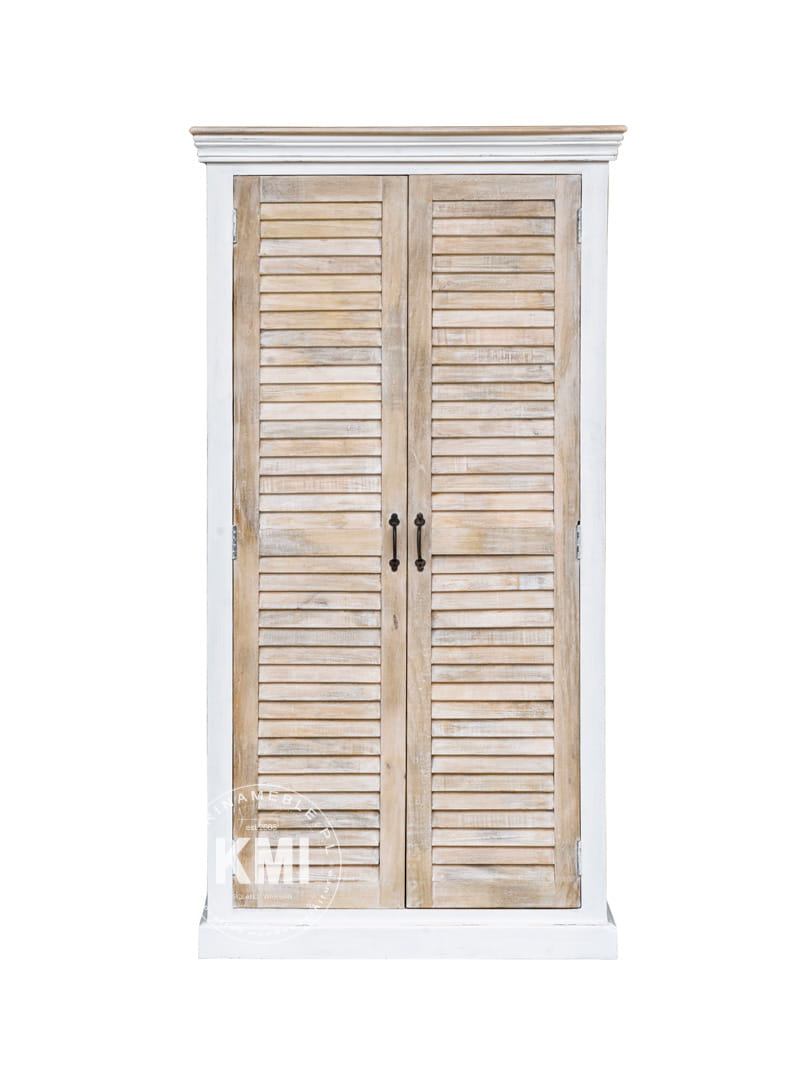 Wprowadź do swojego wnętrza powiew nadmorskiej świeżości i niewymuszonej elegancji, wybierając luksusowe meble hampton. Zjawiskowa, wysoka na 200 cm szafa żaluzjowa została wykonana w całości z litego drewna mango. Wyróżnia się estetyką shabby chic: korpus pomalowano białą farbą akrylową i celowo postarzono, a lamelowe drzwi wykończono przecieranym, białym woskiem. To niezwykle funkcjonalna szafa drewniana, oferująca sprytne wnętrze – po wyjęciu dwóch górnych półek zyskujesz swobodny dostęp do drążka na wieszaki. Idealnie wpisuje się w modne meble bielone, stając się jasnym, pojemnym i zjawiskowym sercem sypialni. Sprawdź, jak autentyczna szafa hampton odmieni Twój dom.